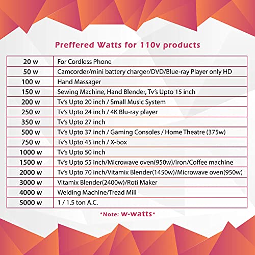 For Heating elements like Iron Box, Toaster, Grill, Coffee Maker above 1000W we can use 2000W electronic type other than this please use normal transformer type step down converters
