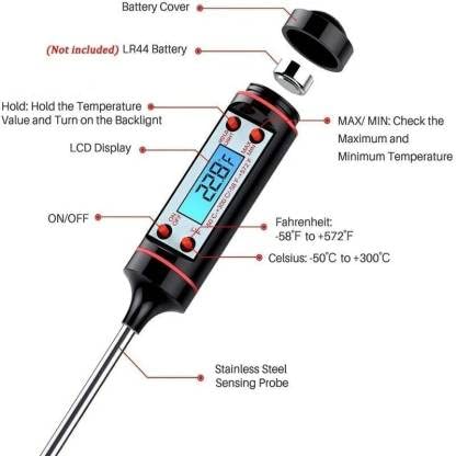 MCP Healthcare Digital Food thermometer with stainless steel sensor probe. Simple LCD Display for easy reading · Measures in Fahrenheit and Celsius · Batteries included · Ideal Kitchen . It is much suitable for measuring the temperature of the drink, milk, coffee, food, and BBQ. This is Portable Digital Probe Food Meat Thermometer. This pen-style digital thermometer is characterized by multi-usage, low power consumption, high stability, high accuracy, compact structure, easy operating.