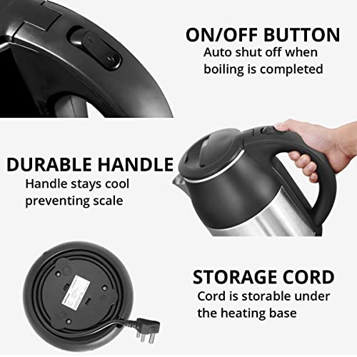 CONCEALED HEATING ELEMENT & IN-BUILT FILTER SIEVE: This electric kettle is convenient & safe with concealed heating element.This avoids calcification & makes your kettle long lasting. Effectively filter every cup of water & enjoy convenient cleaning