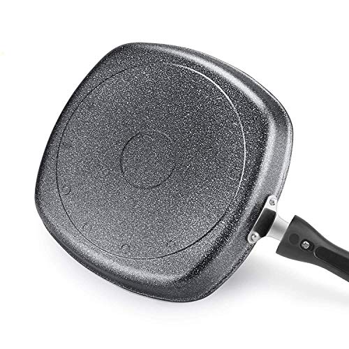 Meqstore Non-Stick Virgin Grade Aluminium PFOA/Heavy Metals Free, Gas Compatible Grill Pan, Soft-Touch Handles 3.5mm, 22.5cm, 1.8 litres, Grey