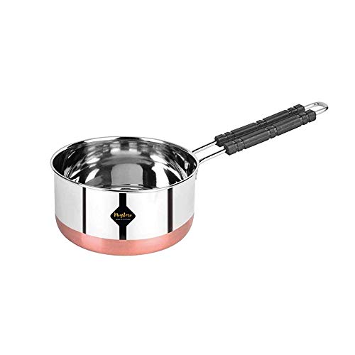Meqstore Stainless steel Copper Coated Flat Stove Bottom Sauce & Milk Pan: Deep vessel height is useful to cook more food. Available in multiple sizes according to the needs of the kitchen. Easy to clean and wash, they have very exotic silver shining. Highly durable and made of fine quality stainless steel & Copper.