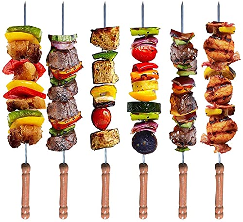 MFORALL 12 PCS Barbecue String with Wooden Handle Skewers for Tandoor, Grill, Stainless Steel Stick with Wooden Handle Tandoor Barbeque Grill BBQ Needle (1 x 12 pc skewers Set)