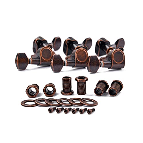Mini Square Head Vintage Style Guitar Machine Heads 6R Tuning Pegs for Guitar Bass GC201G (Coffee)