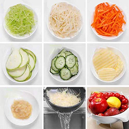 Mixen New Upgrade 9 in 1 Multifunction Vegetable Cutter with Drain Basket Magic Rotate Vegetable Cutter Portable Slicer Chopper Grater Kitchen Tool