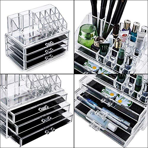 Removable black padding keeps your jewelry protected and in place and also keeps the drawers clean and cushion your makeup.
