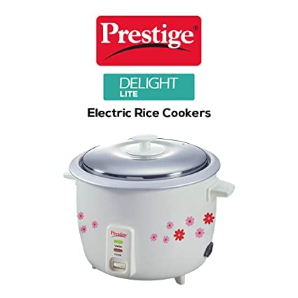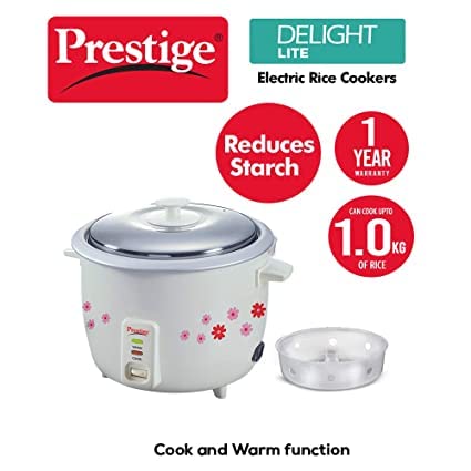 Delight Lite Electric Rice Cooker PRWO 1.8-2 SR (1.8 L Open type, with Aluminium Cooking Pan – 2 U Starch Reducer attachment – 1 U CLOSE FIT LID: Comes with a high-quality stainless-steel lid. The lid is provided with steam vents to allow steam to escape easily. CONTROLS: It houses two indicators- cook and warm ensuring after the rice is cooker, it automatically keeps it warm. COOL TOUCH HANDLES: Convenient cool touch handles make it easy to carry the cooker. ADDITIONAL COOKING PAN: The pan allows uniform distribution of heat and cooks even and it can be stacked inside the cooker. DETACHABLE POWER CORD: Makes it portable and convenient to use. UNIQUE STARCH REDUCER: This removes excess starch and stores it for disposal.