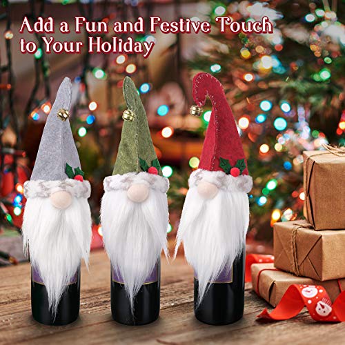 Mocoosy Christmas Gnomes Wine Bottle Covers, Handmade Swedish Tomte Gnome Christmas Decorations Santa Claus Wine Bottle Topper Decorative Bottle Bags Holiday Home Table Xmas Decor Gift 3 Pack