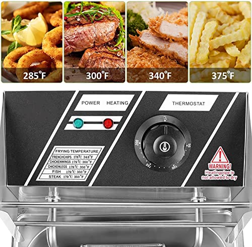 【Good quality】:The detachable thick fuel tank is convenient for quick and thorough cleaning. Made of stainless steel, durable and lasts for long time use.Single tank Comes with FREE stainless steel fryer basket and plastic handles,one year warranty Equipped with multiple safety features, and designed to be easily broken down daily for cleaning, safe and hygienic,Easy to operate, easy clean ,and high performance,excellent efficiency