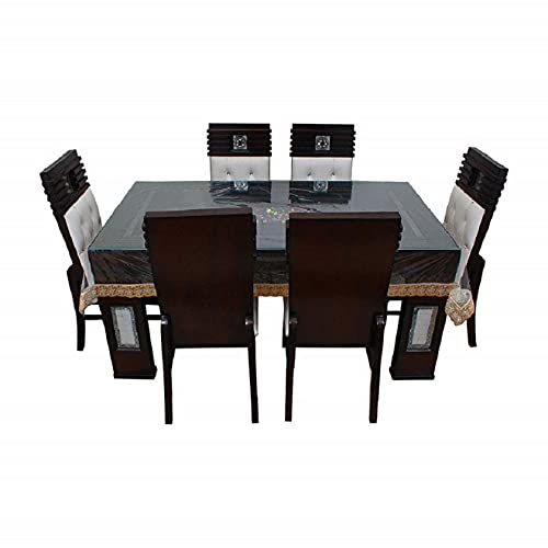 MONKDECOR PVC Transparent 14 Seater Dining Table Cover with Golden Lace(60×140 Inch. Rectangle)