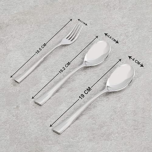 [18-PIECE SET INCLUDES]- This cutlery set contains 6 Dinner Spoons 6 Dinner Forks 6 Tea Spoons, Ideal for family daily use, entertaining, hotel, restaurant, parties, wedding and more.