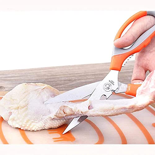 Equipped with reliably sharp steel blades, the premium kitchen shears quickly cut through bones, ribs, chicken wings and meat as well as garden-fresh vegetables, packages and cardboard boxes. No more searching for household scissors or dealing with dull blades thanks to the mosaic multifunction kitchen shears.