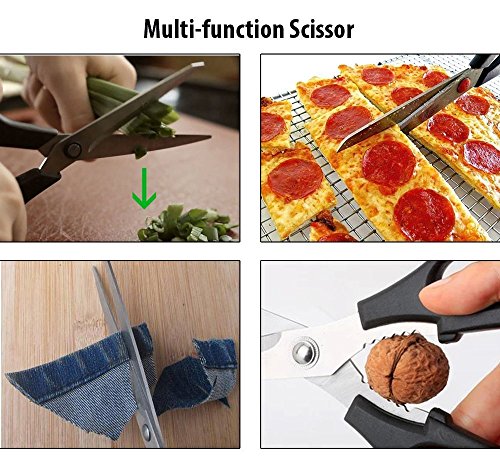 Multifunction kitchen shears come apart only when you want them to/sharp blades make easy work of any cutting task/ideal for cutting, scaling, peeling, removing caps and cracking nuts/ergonomic non-slip grip for enhanced safety/hand wash only