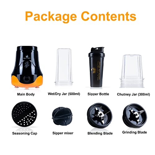 MultiInsta Nutri Blender – Powerful Nutri Bullet Blender with Bullet Mixer Grinder Make Smoothies and Juices in Seconds, Dry Grinding, Chutneys and Dips Powerful 500W Copper Motor