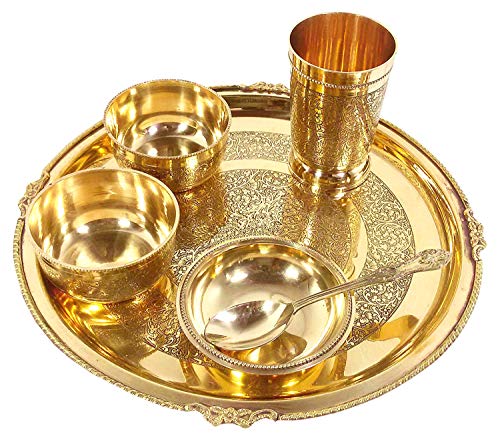 M&V CRAFT PURE Brass Luxury Dinner Set, Set of 6 Pieces, Now in 12 INCH THALI,Solid Brass Best for Gift Option