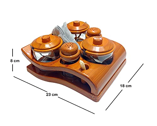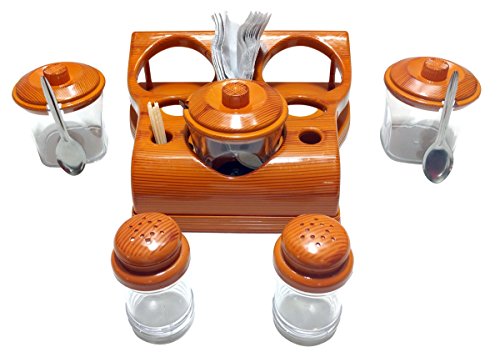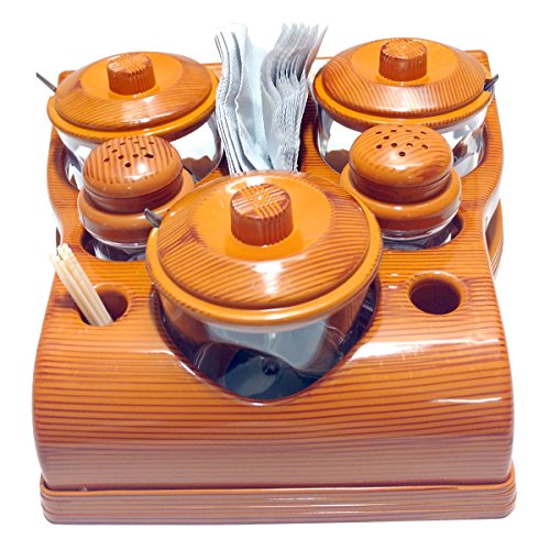 Nabhya Complete Dining Table Set of Pickle Jars, Salt and Pepper Dispenser, Toothpick Holder and Spoon Holder(Wooden Look Design, Plastic) (All in One)