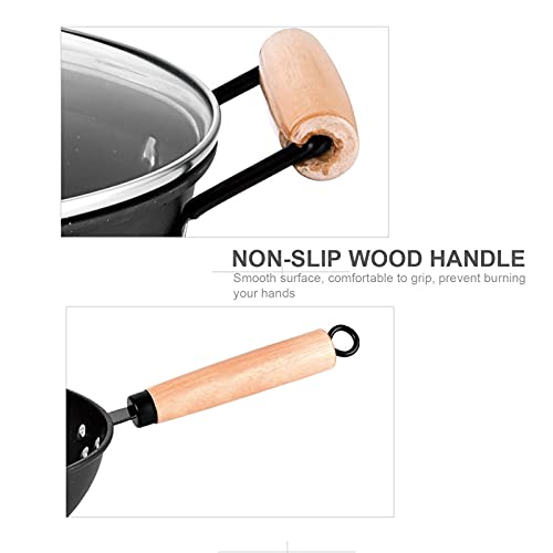 Negaor 3PCS Cookware Set Wok Frying Pan Saucepan with Lid Pots and Pans Set Maifan Stone Nonstick Egg Pan with Wood Handle for Food Cooking Noodles