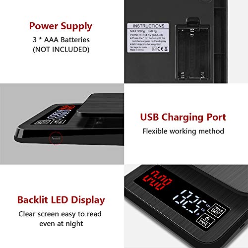 Negaor Food Scale Coffee Scale 22lb Digital Kitchen Scale Weight Grams and Oz for Cooking Baking with Timer LED Display Tare Function Portable Electronic Scales