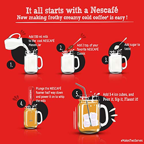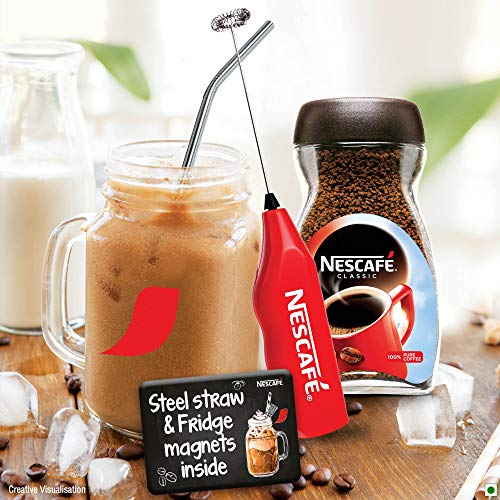 Nescafe Classic Coolest Cold Coffee Kit, Limited Edition – (Mason Jar, Steel Straw, Frother, 2 Fridge Magnets and Coffee, 100 g)