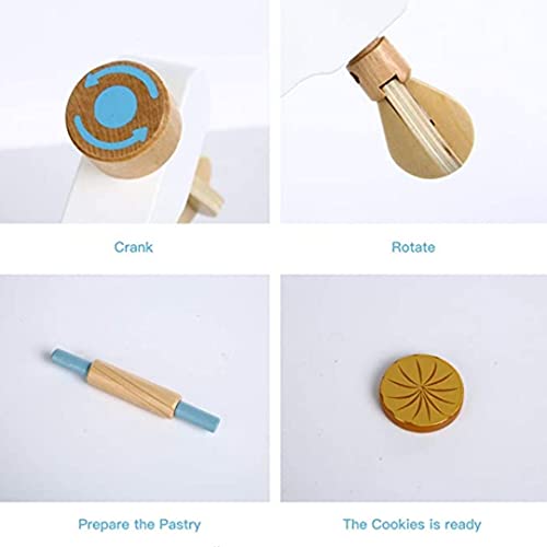The wooden blender set has a batter-making machine to add the flour and butter and make the cookie mixture. Once it is done, they can pour it into a tray and cook them in the oven. They can see cute little biscuits and pretend to eat them and enjoy themselves.