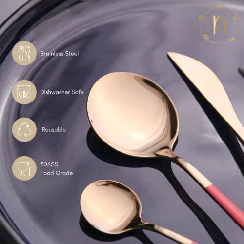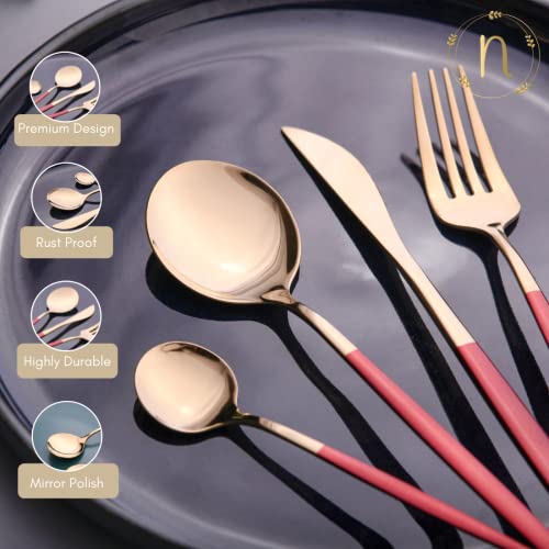 Be the first to review “Nestasia Golden Flatware Set Including 1 Set of 1 Fork, 1 Table Spoon, 1 Dessert Spoon and 1 Knife for Dining (Red)”