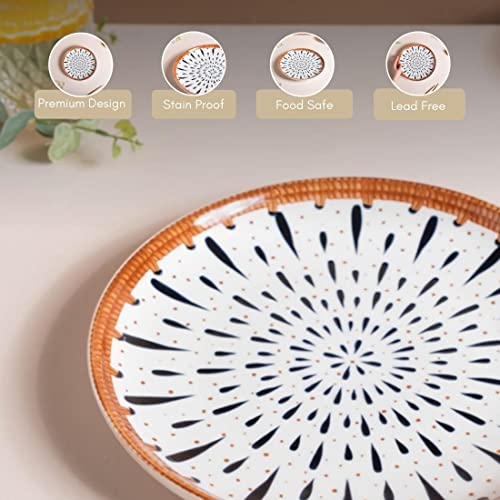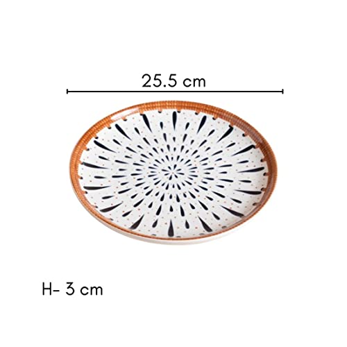 USAGE: The round dinner plate is apt for main course dishes like rice, noodles, pasta, biriyani, and a lot more. One can also use the ceramic plate for serving snacks, appetizers, munchies, or desserts to guests at a small social gathering.