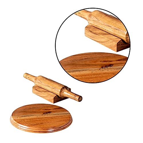 ABOUT: Nestroots Wooden Chapathi rolling pin and board set with stand made with good quality Acacia wood for ensure the durability for long lasting use . Our Chakla belan set have enough weight which adds to the stability, and reduces slippage during rolling.