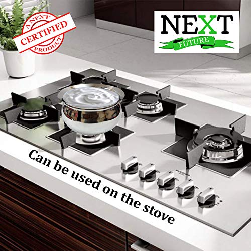Next Future 20g Baby Tomato/ Gundu Stainless steel Handi / Bartan set is highly polished and very finely made stainless steel product. This is a very reliable cookware as well as serveware that brings royalness on the table. It contains 1 highly polished Gundu Stainless steel Handi made in 100% pure Stainless steel with a capacitY of 375ml with size of 12.19cm x 6.00cm. Made with 100% food grade stainless steel and raw material being used of 20 Gauge these handis are very thick, strong and durable. This Stainless steel handi set is apt for on the stove work as well as to be kept inside the refrigerator as a storage handi. This handi set takes less place in your drawer as it is very compact.