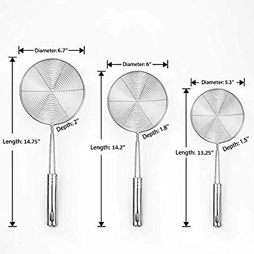 NFI essentials Stainless Steel Puri Strainer Poori Jhara Deep Fry Jara Mesh Strainer Set of 3 Piece (Size -14, 16 & 18cm)