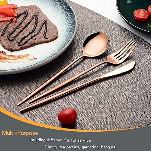 Rose Gold Stainless Steel Flatware Cutlery Sets Including Fork Spoons Knife Tableware for Home,Hotel,Restaurant.This spoon and fork set is made from good grade high quality stainless steel which will prevent rusting.