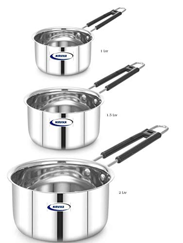 Nirvika Stainless Steel Gas Stove and Induction Compatible Heat Proof Saucepan With Handle for Kitchen (1 L, 1.5 L, 2 L ) – Set of 3 pcs Combo