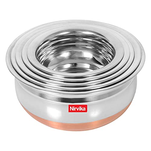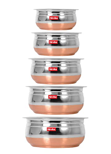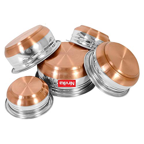 Be the first to review “Nirvika Stainless Steel Handi Set Copper Bottom Handi with Lid Kitchen Serving,Cooking Bowl |Cookware Set /Urli Set 5-Pieces | patila Bhagona”