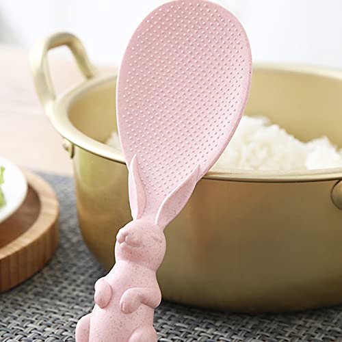 Non-Stick Rice Spoon Rabbit-Shaped Stand-up Serving Rice Spatula Rice Paddle Vertical Kitchen Serving Spoon Rice Spoon Cooking Tableware(Beige) -Layfoo