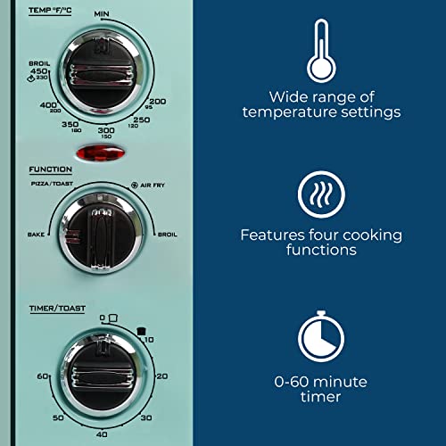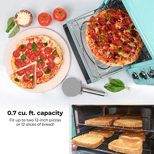 Nostalgia RTOV2AQ Large-Capacity 0.7-Cu. Ft. Capacity Multi-Functioning Retro Convection Toaster Oven, Fits 12 Slices of Bread and Two 12-Inch Pizzas, Built In Timer, Includes Baking Pan,Aqua