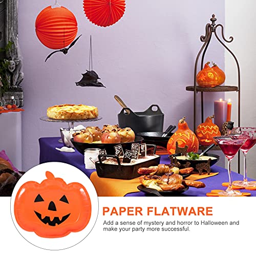 NUOBESTY 24pcs Halloween Paper Flatware Plates Paper Pumpkin Plates Home Flatware Disposable Platters Sets