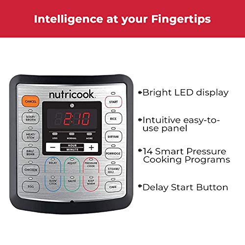 9 Appliances in 1 – Advance features of nutricook: Pressure Cooker, Saute Pot, Steamer, Slow Cooker, Rice Cooker, Food Warmer, Cake Maker, Soup Maker, Egg Cooker, All in one electric appliance