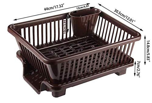 NYTK RETAIL 3 in 1 Large Durable Plastic Kitchen Sink Dish Rack Drainer Drying Rack Washing Basket with Tray for Kitchen, Dish Rack Organizers, Utensils Tools Cutlery (Brown)