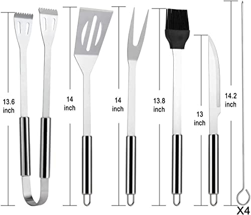 Safe length, prevent heat — all of these barbecue grill utensils are specifically designed with a 13.78 inch long handle, keeping your hands away from the heat.