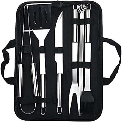 Practical Design, Convenient Carrying — 9-piece barbecue grill tools in an Oxford cloth zippered bag, which keeps tools firmly and organized. You can easily carry it anywhere, and it is perfect for travel and storage.