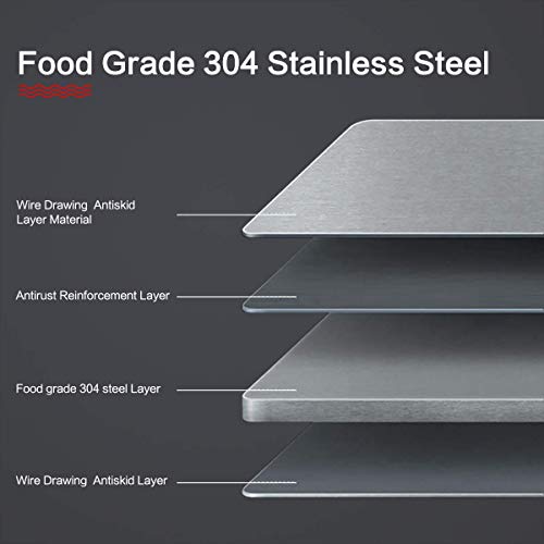 The cutting board is made of food grade stainless steel and will not mold, cracked or warped, so there will be no dirt, debris or plastic fibers contaminating your food.