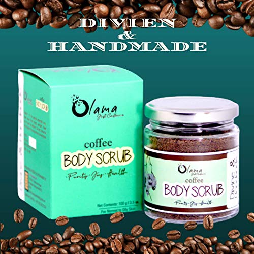 Be the first to review “Olama Coffee Body Scrub |Divine & Handmade with AAA arabica coffee Raw Brown Sugar, cold press Coconut oil, eucalyptus oil | Cellulite scars and breakouts faded away skin brighter & tighter| Paraben & Sls Free| for Men and Women | 100G”