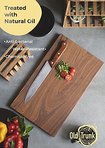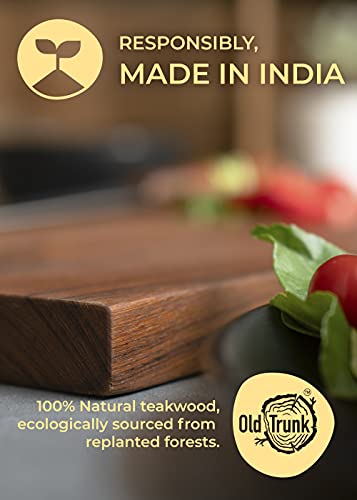 Old Trunk’s cutting board is made of high-quality, top-grade Teak Wood that has been ecologically sourced.It is robust and sturdy, lasting many years and providing excellent results every time it is used.Teak with a Thick Jungle-wood that can survive strong impacts, chopping, and soaking, as well as not warp or split, is considerably a lot more durable than most wood-based cutting boards.