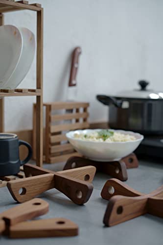 Old Trunk I Wooden Trivet I Premium Valsadi Teak Wood I Heat Resistant Pan & Pot Holder | Reversible & Detachable I for Kitchen & Dining Table I Hot Utensils, Cooker, Serve-Ware Stand (Set of 2)