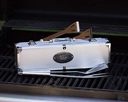 · FREE ALUMINUM CASE: Store or carry your grill set safely. Strap in the tools, double latch and go.