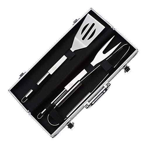 OMANZA 3-Piece BBQ Stainless Steel Barbecue Grilling Utensils Grill Tool Set with Aluminium Case