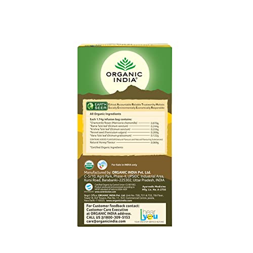 Organic India Tulsi 25 Tea Bag Pack of 2 (Honey Chamomile)