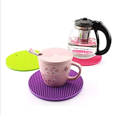 OSLEN Multipurpose Silicon Round Hot pots Holder Mats Heat Resistant Disc Pads Kitchen Insulation Anti-Slip for Dining Table and Kitchen Hot Plate Stand (Multicolour, 1 Piece Pad)
