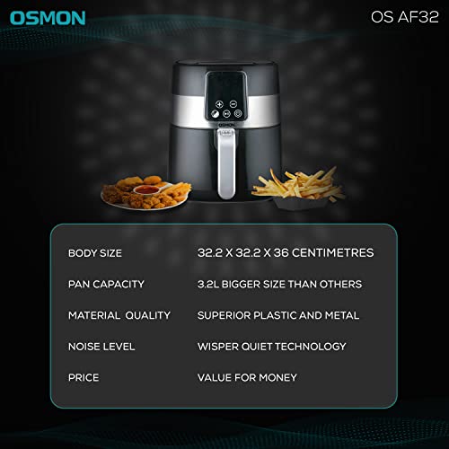 Be the first to review “OSMON OS AF32 – Digital 4 Ltr Air Fryer with 3.2 Ltr removable basket, 4-in-1 cooking function with Automatic Shut-off (Silver & Black)”