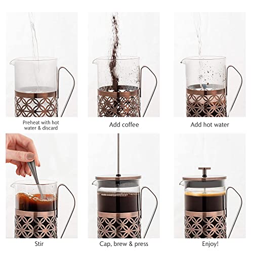 FRESH, AROMATIC, & EXQUISITE COFFEE – Drinking coffee using your Ovente French Press becomes a sensory experience that paints the tongue. This press preserves the naturally flavorful oils and bold, complex flavors in your gourmet coffee beans