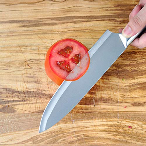 MULTI-FUNCTIONAL KNIFE : This professional chef’s knife can easily handle your daily kitchen tasks of chopping, slicing, mincing and dicing fruits, vegetables and several meat varieties including fish, kitchen and beef. It truly is the all-around cooking knife!
