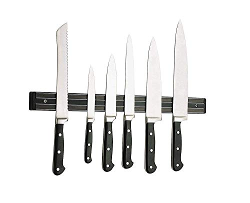 This magnetic knife rack uses durable and powerful neodymium magnets (N42) used for industrial settings, it will make sure this knife magnet bar can hold the normal kitchen and garage accessories without worrying about them